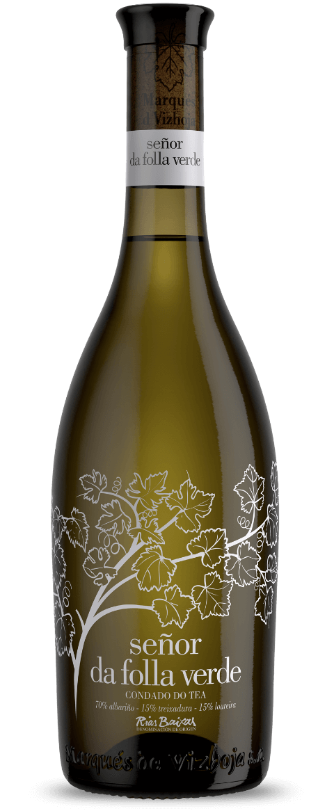 Señor da Folla Verde, D.O. Rías Baixas, County of Tea. With this wine, we have sought to pay tribute to domestic and ancestral grapes of the O Condado region. 70% Albariño, 15% Treixadura, and 15% Loureira.